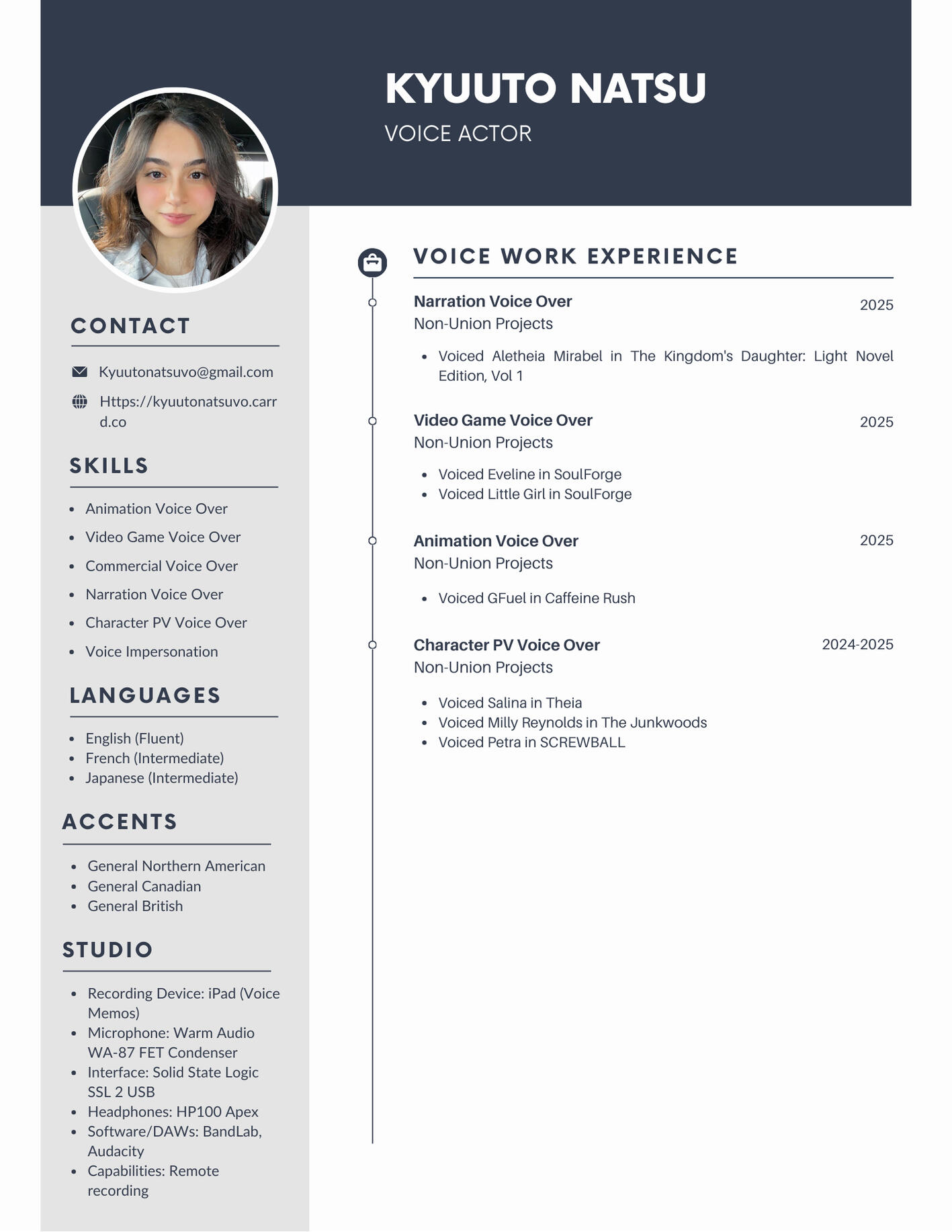 Hi, I’m Kyuuto Natsu, a voice actress with a home studio. Let’s bring your project to life!